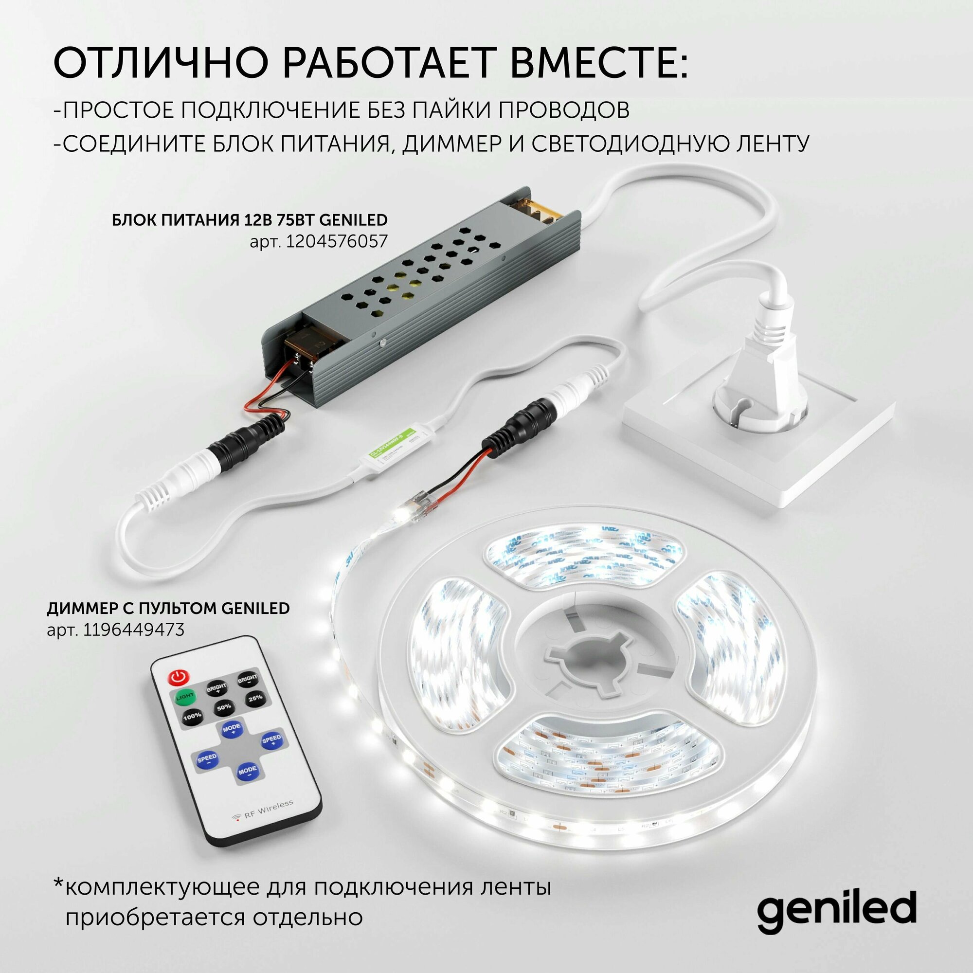 СохранитьСветодиодная лента, подсветка Geniled - для комнаты, в гардероб, на кухню - Зеленый свет / GL-120SMD2835 / 12В / Длинна - 5м / B - 8 мм / W - 12Вт / Green / IP33 интересное:
