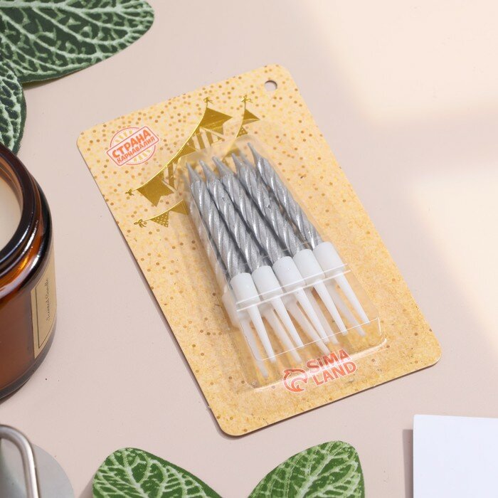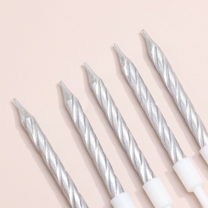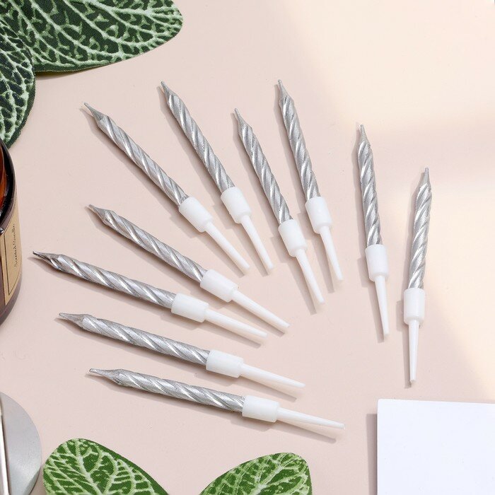 Свечи серебряные для торта, 10 шт, 7 см, с держателями