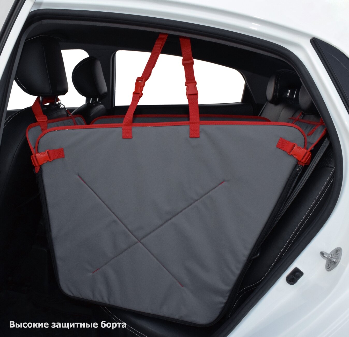 Автогамак Happy Dog (Хэппи Дог). На 2/3 заднего сиденья. Цвет: серый с красной окантовкой.
