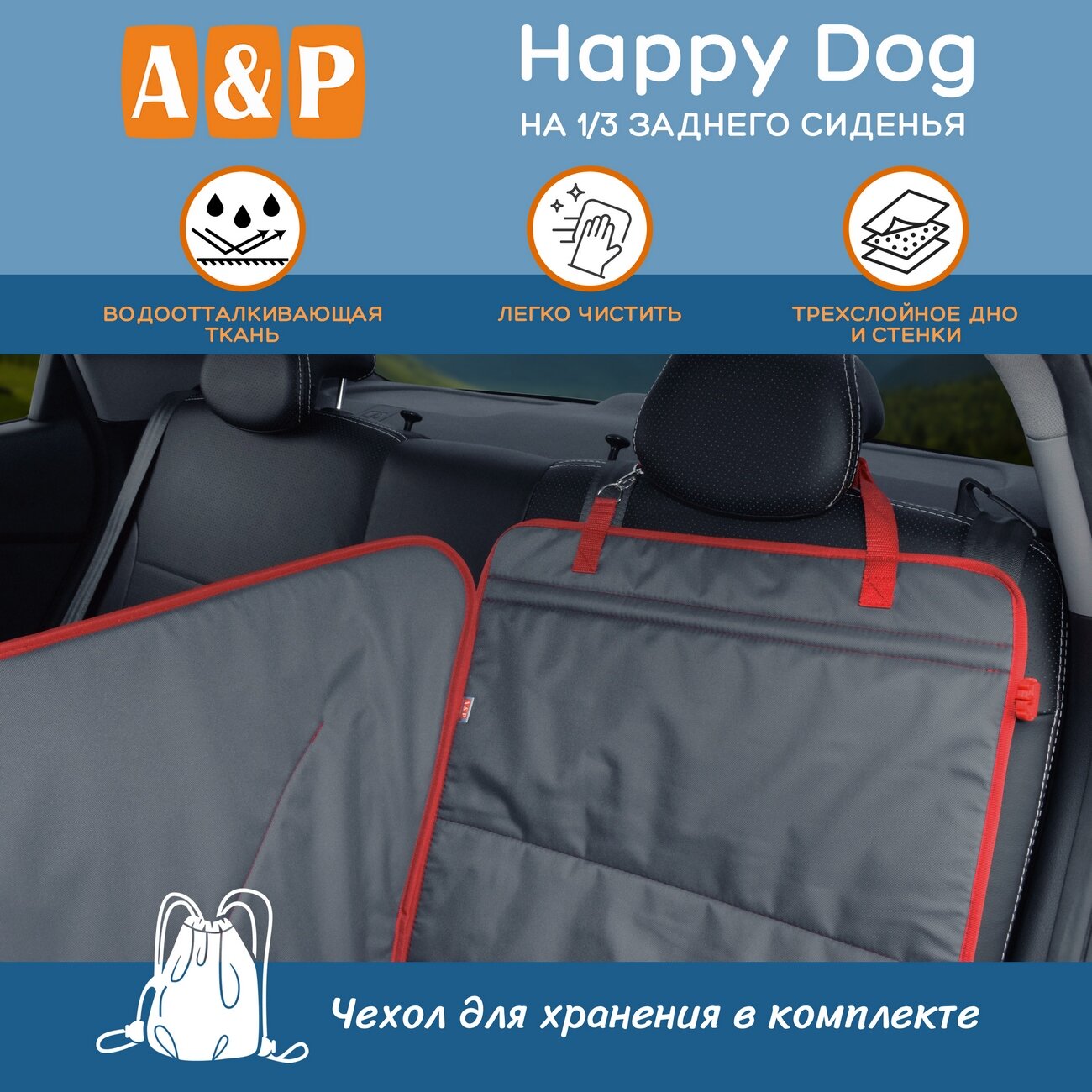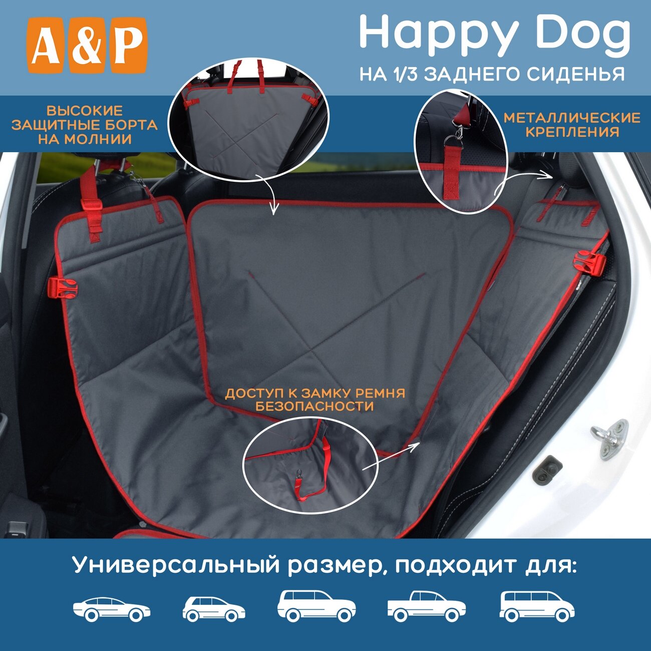СохранитьАвтогамак Happy Dog (Хэппи Дог). На 1/3 заднего сиденья. Цвет: серый с красной окантовкой. интересное: