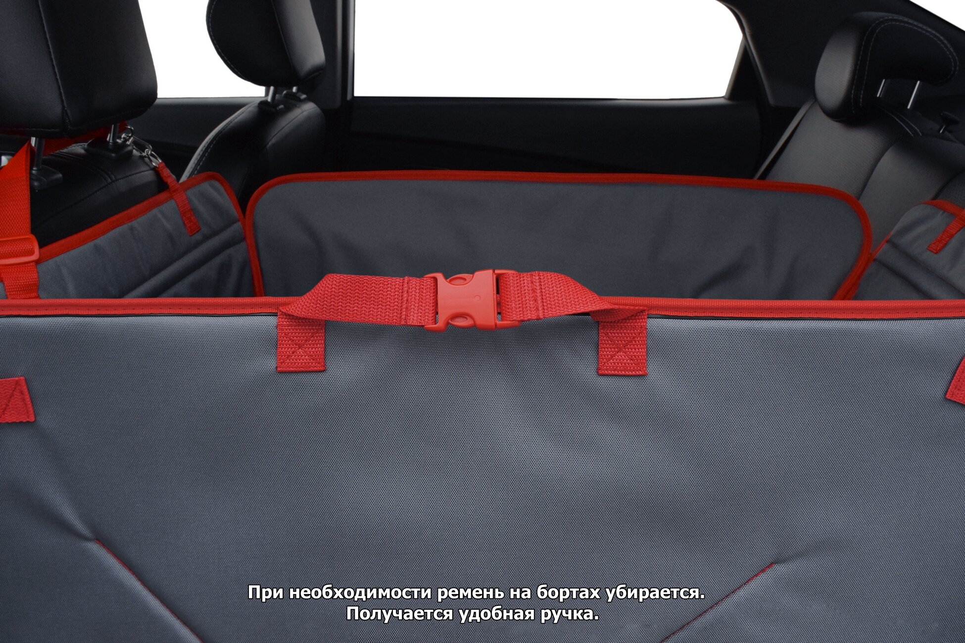 Автогамак для перевозки собак Happy Dog (Хэппи Дог). На 1/3 заднего сиденья. Цвет: серый с красной окантовкой.