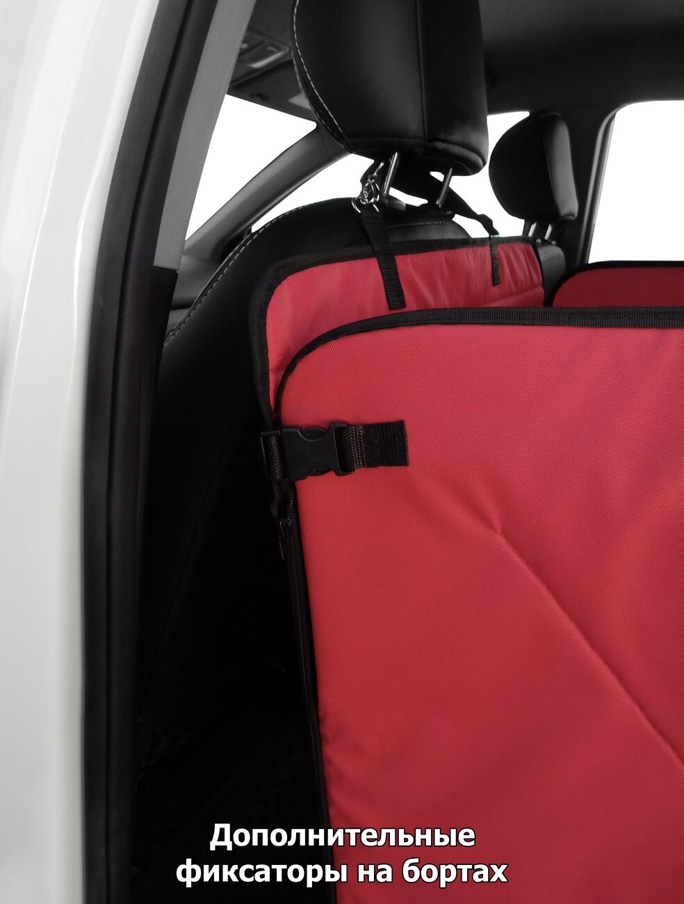 Автогамак для перевозки собак Happy Dog (Хэппи Дог). На половину заднего сиденья. Цвет: красный с черной окантовкой.
