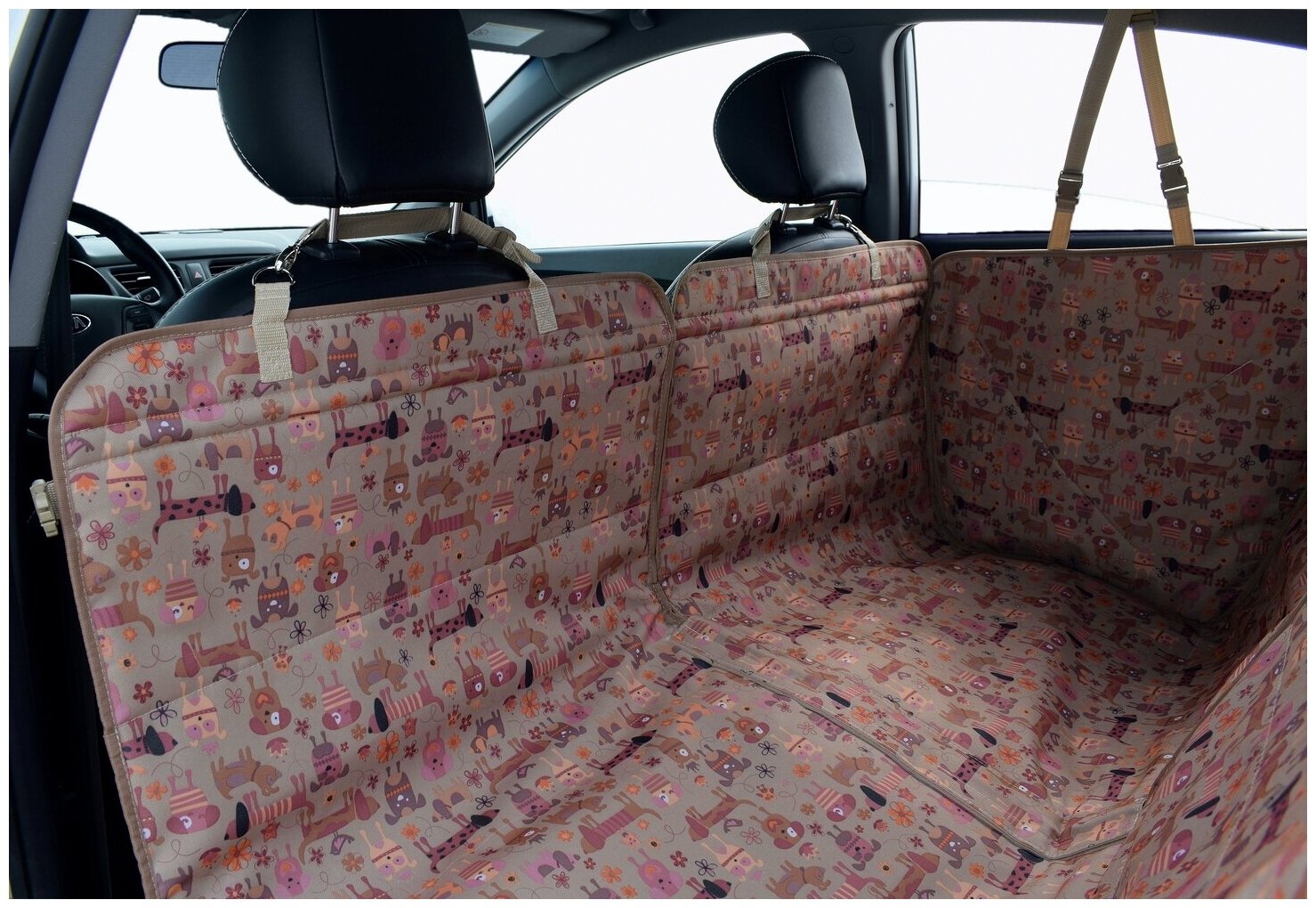 Купить Автогамак Happy Dog (Хэппи Дог). Цвет: собаки на бежевом фоне.