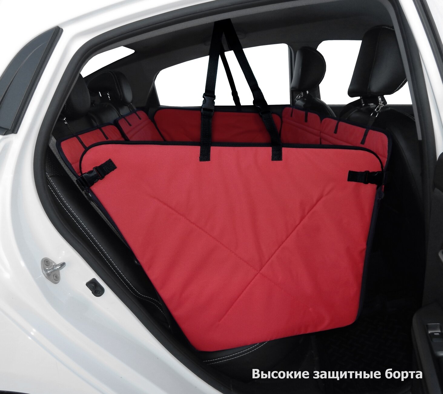 Автогамак Хэппи Дог. Цвет - Красный с черной окантовкой.