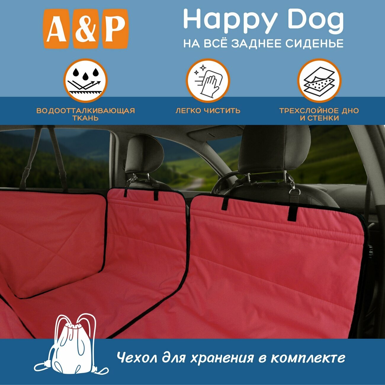 Купить Автогамак Happy Dog (Хэппи Дог). Цвет: красный с черной окантовкой.