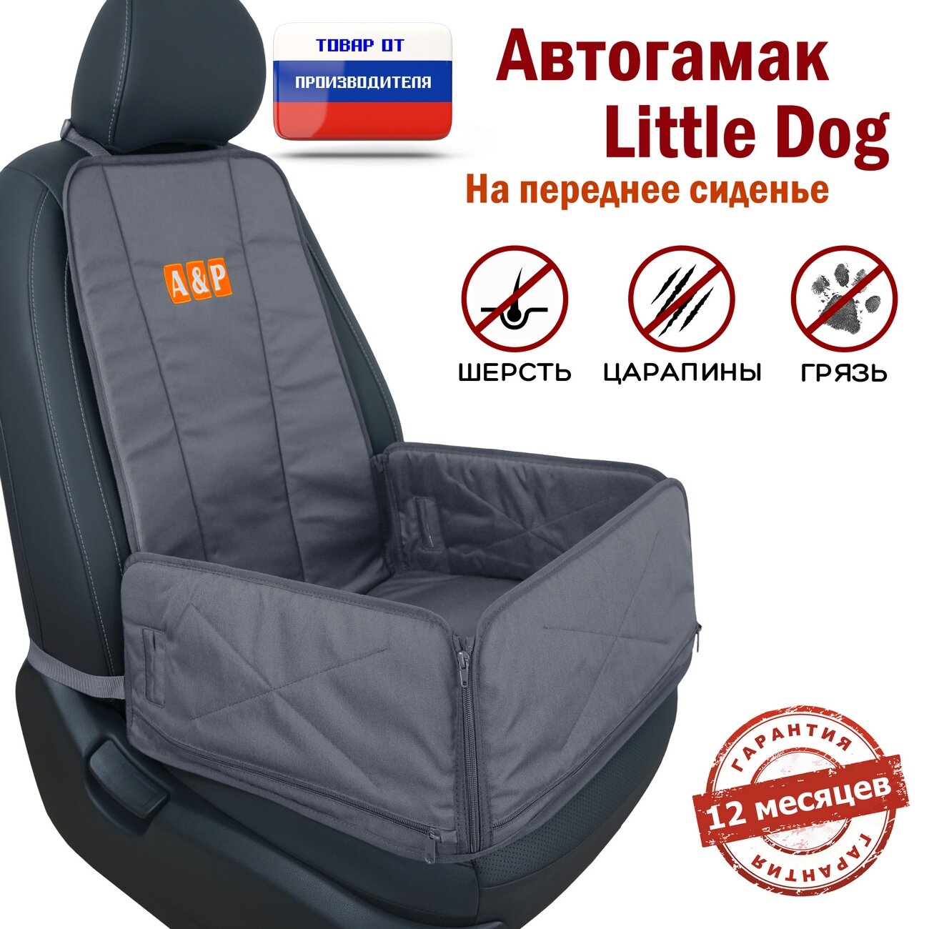 Автогамак Little Dog (Литл Дог) на переднее сиденье. Цвет - серый.