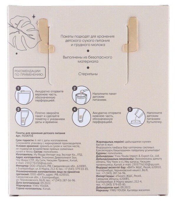 Пакеты для хранения и заморозки грудного молока, 200 мл, 25 шт.