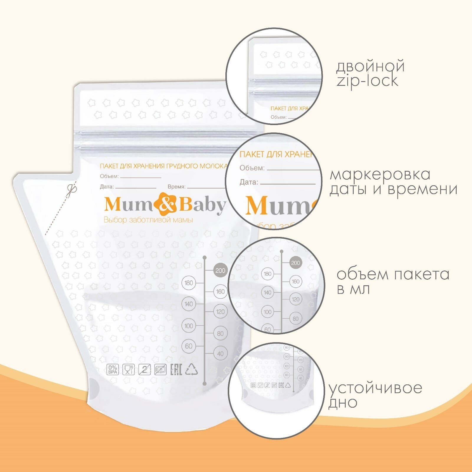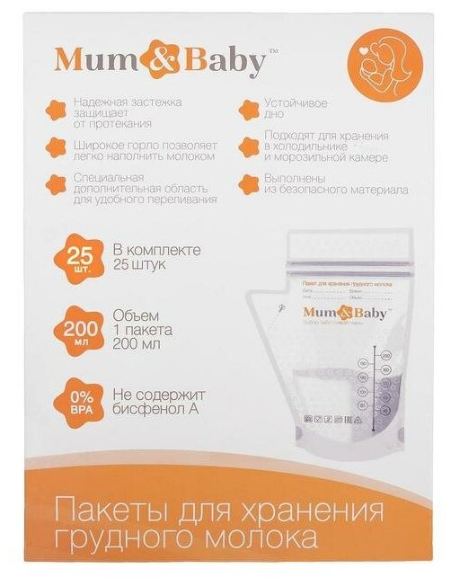 Mum&Baby Набор пакетов для хранения и заморозки грудного молока, 200 мл, 25 шт.
