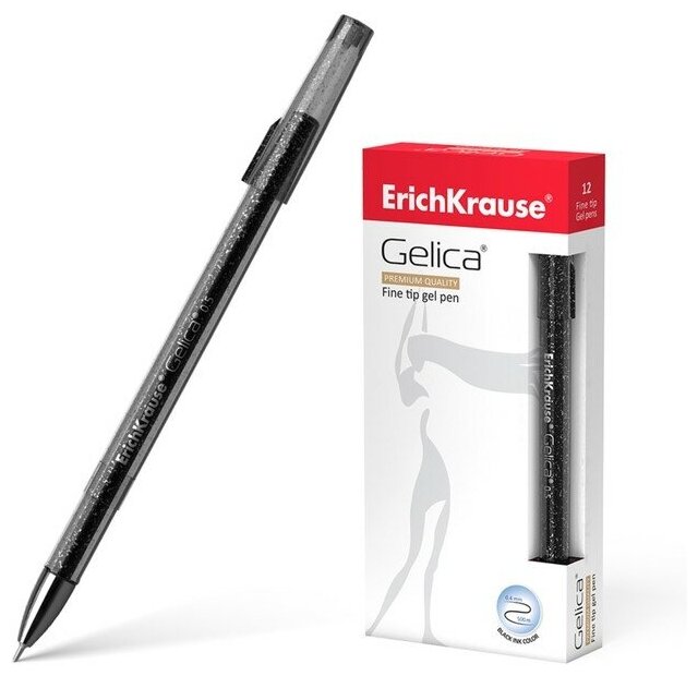Ручка гелевая ErichKrause Gelica, чернила чёрные, узел 0.5 мм, длина линии письма 500 метров