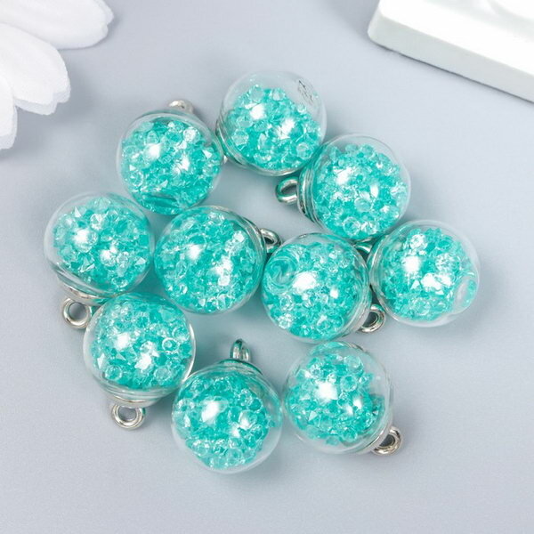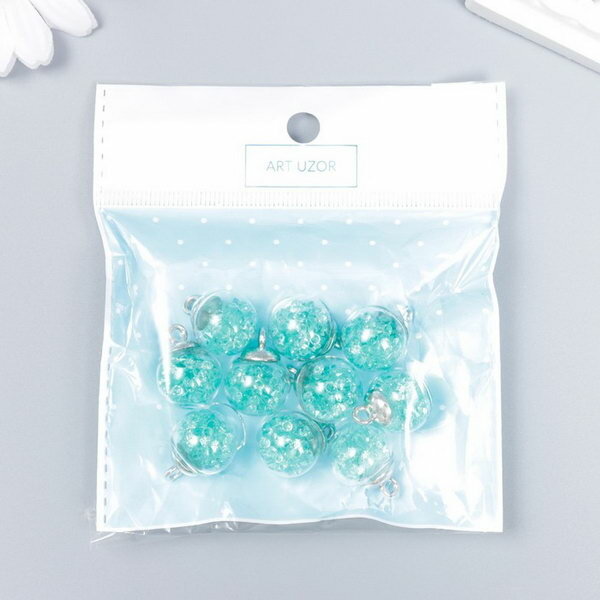 Подвески декоративные Арт Узор стекло, "Шар-камешки", морская волна, d 1,6 см, 10 шт