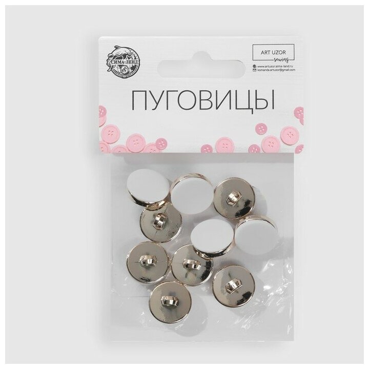 Арт Узор Набор пластиковых пуговиц на ножке, d = 15 мм, 10 шт, матовые, цвет белый/золотой
