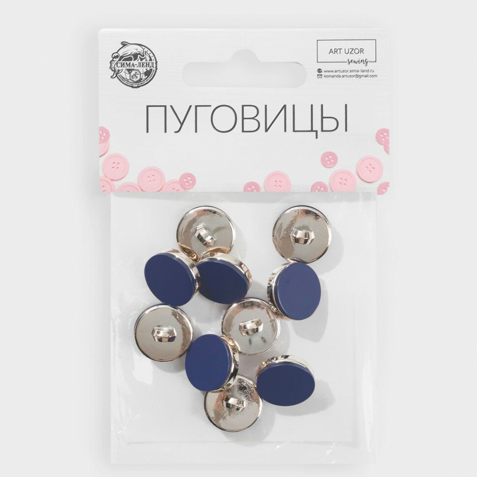 Набор пуговиц на ножке круг d15мм 10шт пластик матовый синий/золотой АУ 7386409
