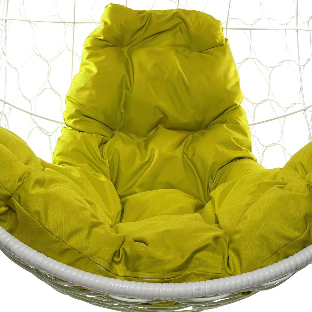 Подвесное кресло M-Group "Овал" с ротангом Белый/ подушка Зеленая