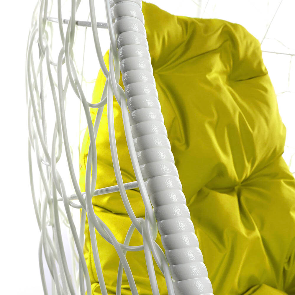 Купить Подвесное кресло из ротанга "Овал" белое с желтой подушкой 830х700х1190 M-Group