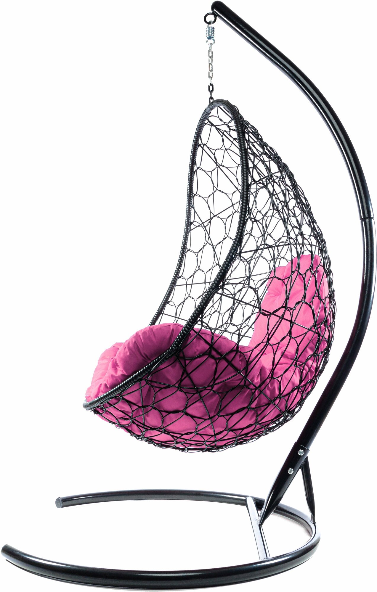 Подвесное кресло овал с ротангом чёрное, розовая подушка