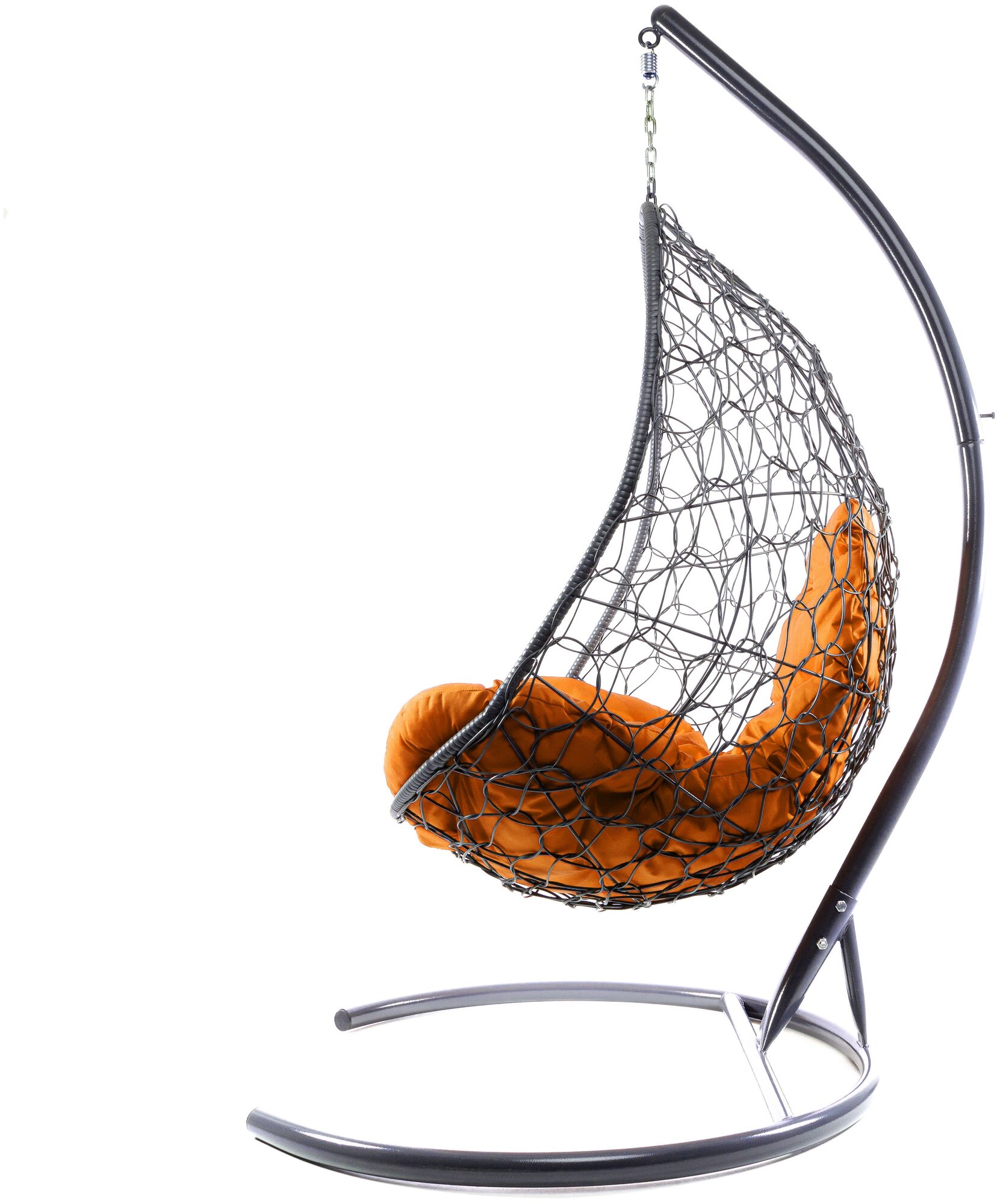 Подвесное кресло овал с ротангом чёрное, оранжевая подушка
