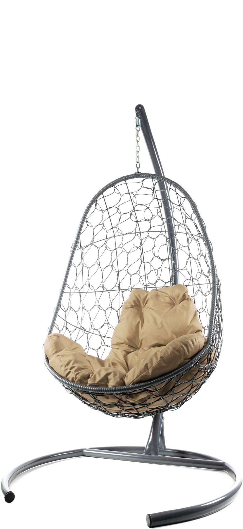 Подвесное кресло овал с ротангом серое, бежевая подушка