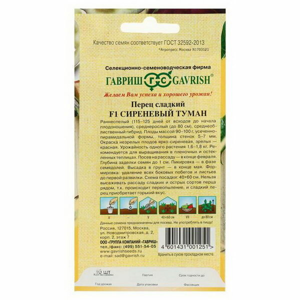 Семена Перец сладкий "Сиреневый туман", F1 10 шт интересное: