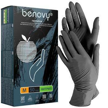 Перчатки одноразовые нитриловые смотровые Benovy Nitrile MultiColor, размер M, черные, 50 пар в упаковке интересное: