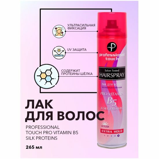 Лак для волос Professional Touch Pro Vitamin B5&Silk Protein, экстрасильная фиксация, 265мл