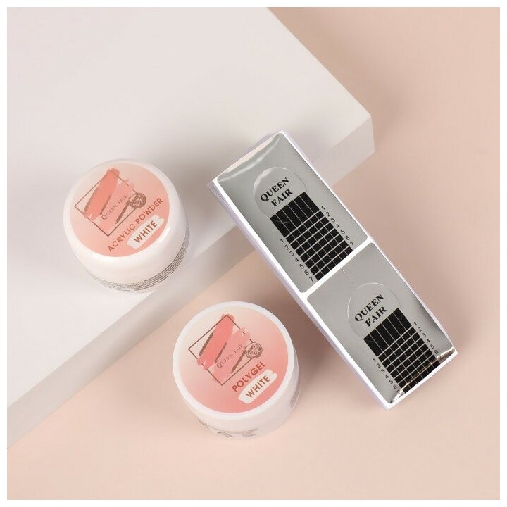 Queen fair Набор для наращивания ногтей: нижние формы, белая акриловая пудра и гель, в картонной коробке