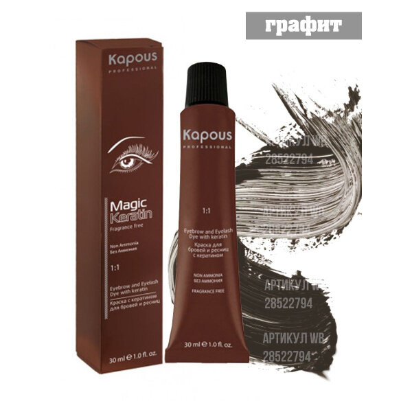 Kapous Professional Magic Keratin Краска для бровей и ресниц, с кератином, Графит, 30 мл