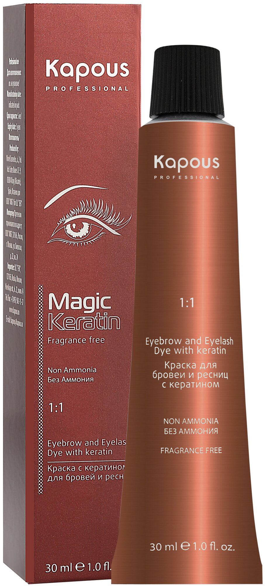Kapous Fragrance free Magic Keratin Краска для бровей и ресниц, 30 мл, №1, черный, 30 мл