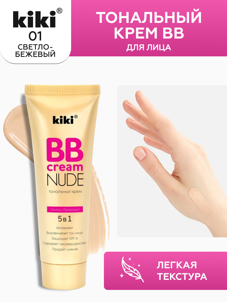 СохранитьKiki BB крем Nude 5 в 1, SPF 15, 40 мл, оттенок: тон 01 светло-бежевый интересное: