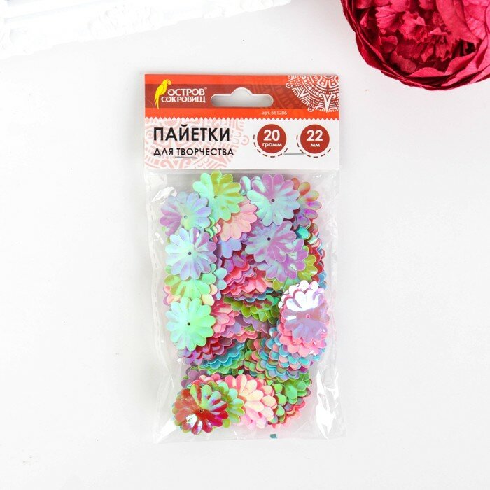 Купить Пайетки для творчества Остров сокровищ Цветы, яркие, 5 цветов, 22 мм, 20 г (661286)