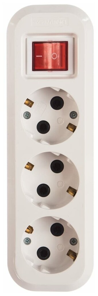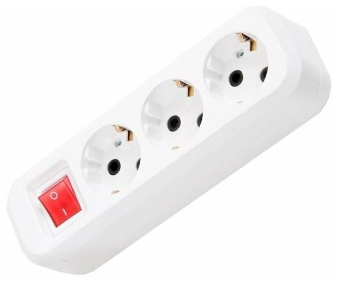 Колодка на 3 гнезда с выключателем c заземлением белая / Колодка на 3 гнезда с выключателем с заземлением белая