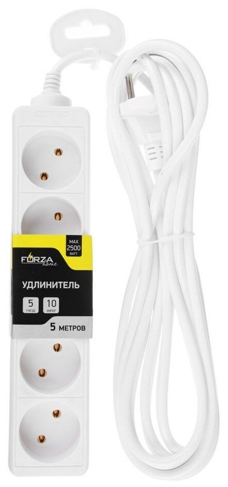 FORZA Удлинитель 5 гнезд, сеч. провода 1 кв.мм, 5 м, 10А, макс. мощность 2500Вт интересное: