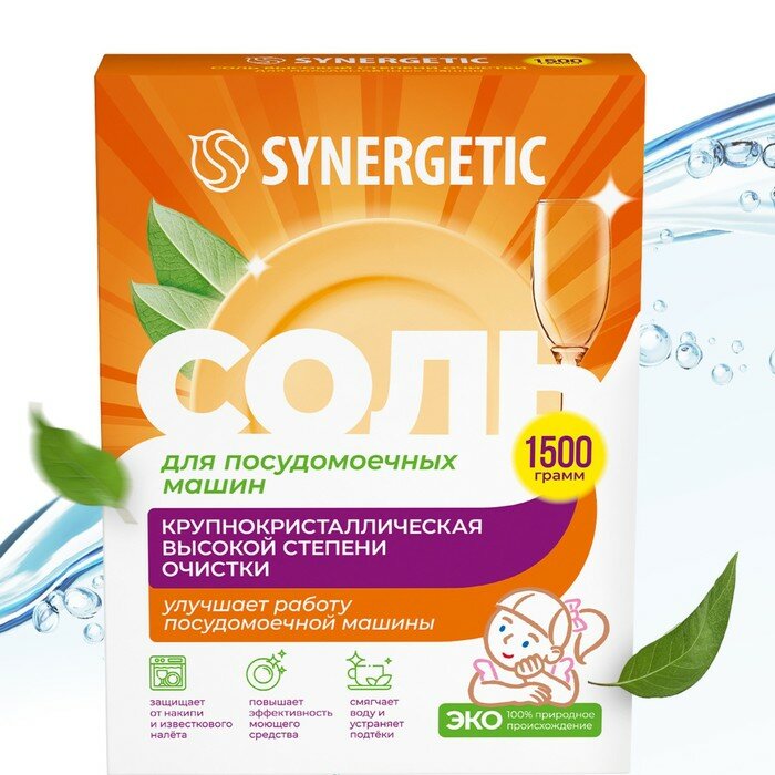 Соль для посудомоечных машин Synergetic 1,5 кг, обладает антикоррозийным эффектом