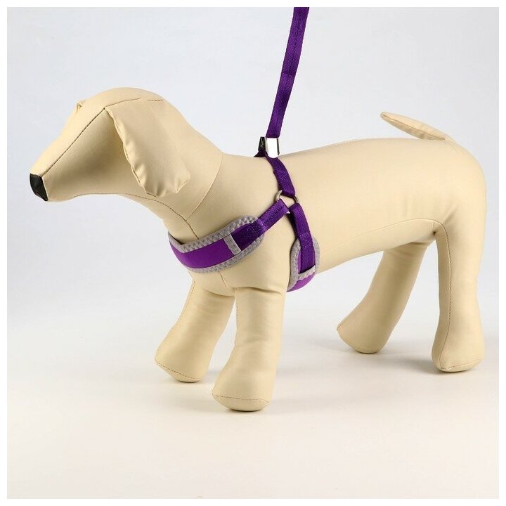 Шлейка для собак Пижон мягкая, с поводком 1х120 см, S, шея 32-68 см, грудь 32-68 см, фиолетовый