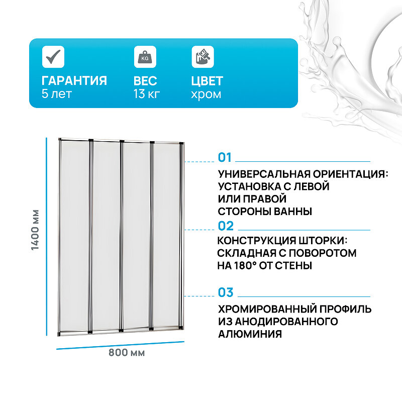 Шторка на ванну WeltWasser 800х1400 мм WW100 100ZA4-80