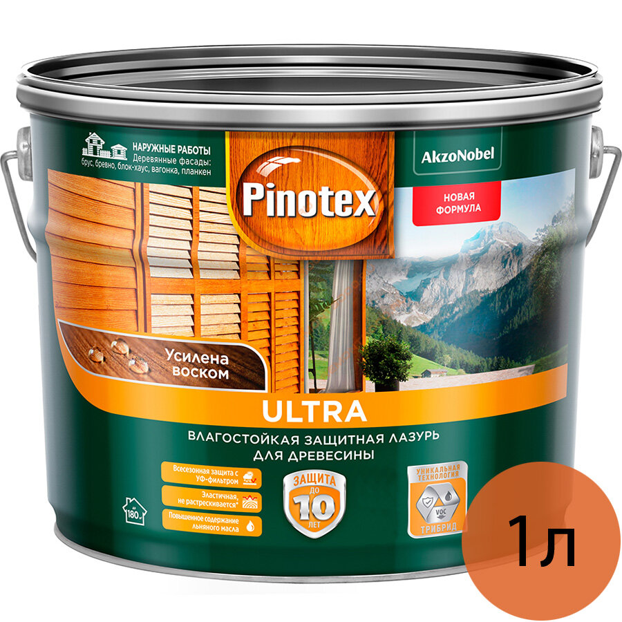 PINOTEX ULTRA лазурь защитная влагостойкая для защиты древесины до 10 лет орегон (0,9л) new