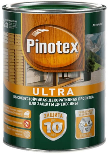 PINOTEX ULTRA лазурь защитная влагостойкая для защиты древесины до 10 лет орегон (0,9л) new
