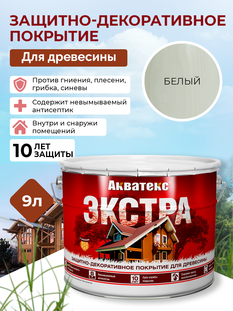 СохранитьЗащитно-декоративное покрытие для дерева Акватекс Экстра, полуглянцевое, 9 л, белое интересное: