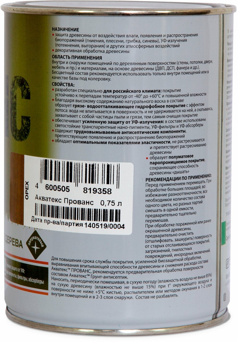 Акватекс Прованс антисептик для древесины лессирующий полуматовый 0,75л бесцветный