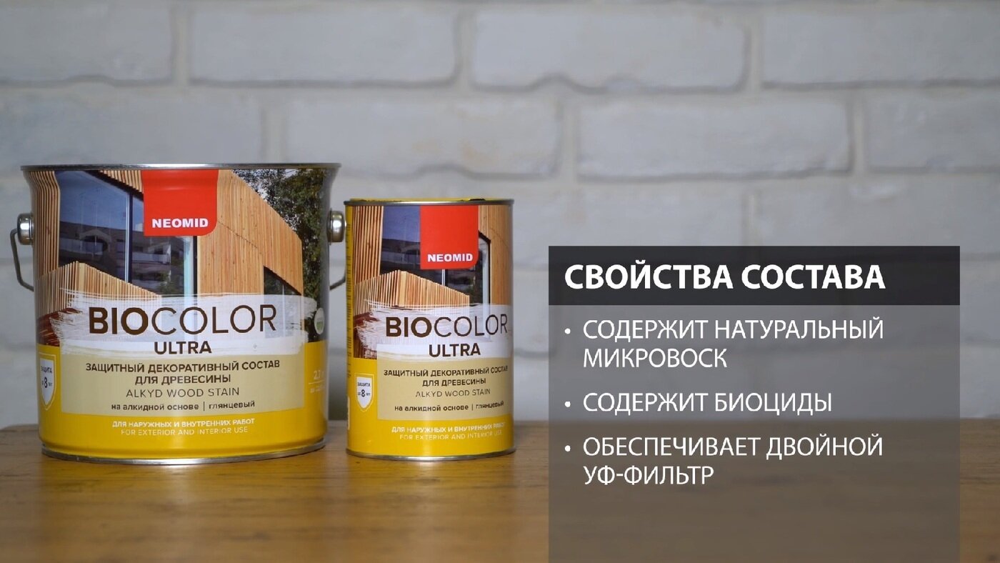 Декоративная Пропитка для Древесины Neomid Biocolor 2.7л Бесцветный Полуглянцевая с Усиленной Защитой / Неомид Био Колор Ультра.