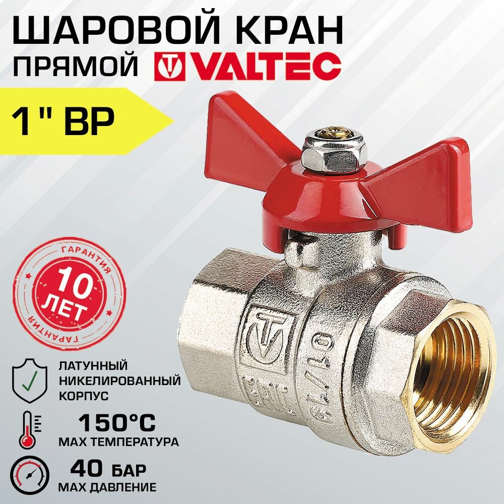 Кран шаровый 1'' ВВ VALTEC BASE бабочка VT.217.N.06 кран валтек Ду(25) 1 ВР/ВР
