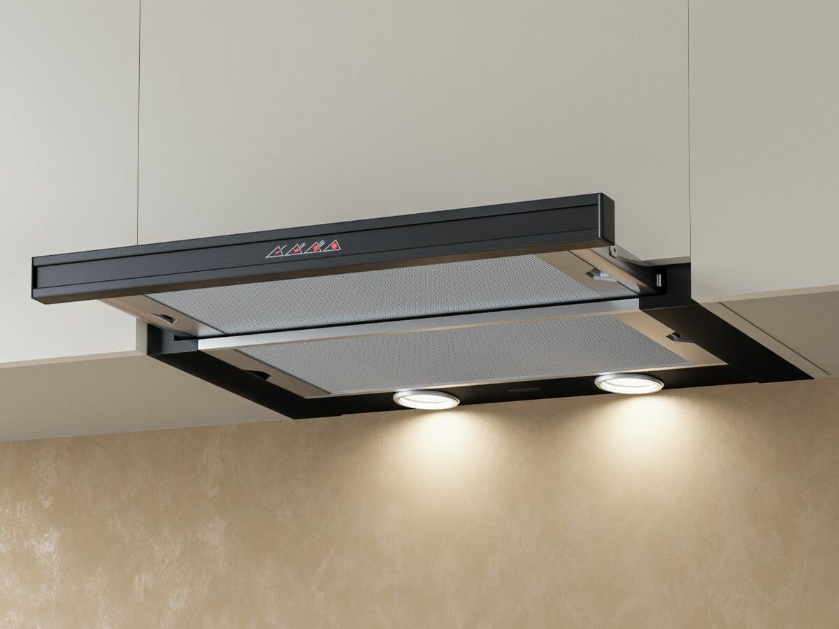 Понравилось: что монтируется в ящик и нет этого огромного колпака как у не встраиваемых моделей что сенсорная – очень приятное и четкое переключение что чёрного цвета, выглядит дороже своей стоимости что выдвижная, люблю такие модели – аккуратно смотрится, выдвинул – включилась, задвинул – выключилась, все происходит без дребезжания, плавно что подсветка достаточно яркая, что с ней одной можно готовить. Возможно, фильтры могли бы быть тоже черными, на мой вкус так было бы лучше. Можно приобрести угольный фильтр, но отдельно. |