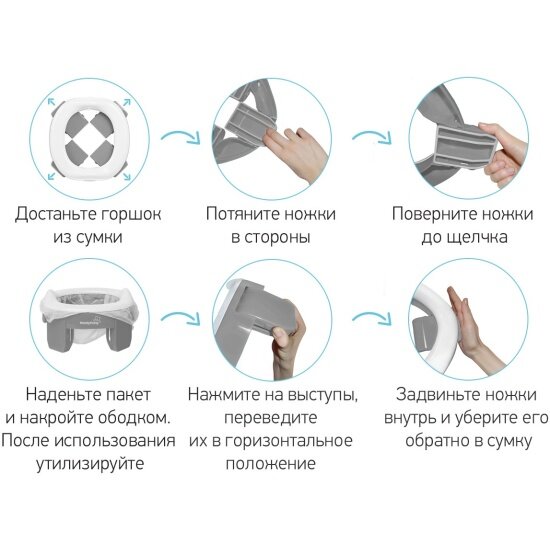 | Подробная комплектация | складной горшок, многоразовая вкладка, 3 одноразовых пакета |