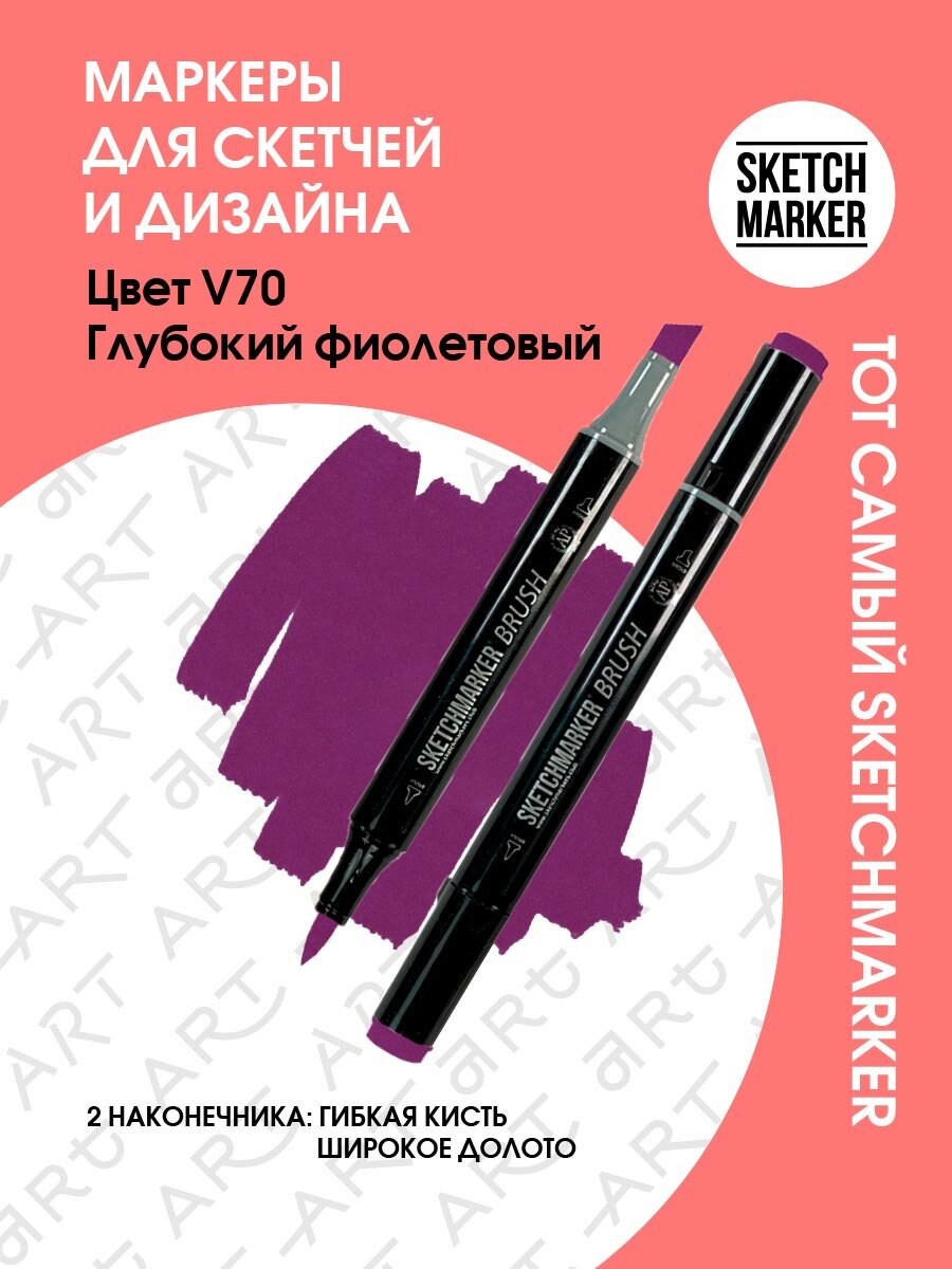 СохранитьДвусторонний заправляемый маркер SKETCHMARKER Brush Pro на спиртовой основе для скетчинга, цвет: V70 Глубокий фиолетовый интересное: