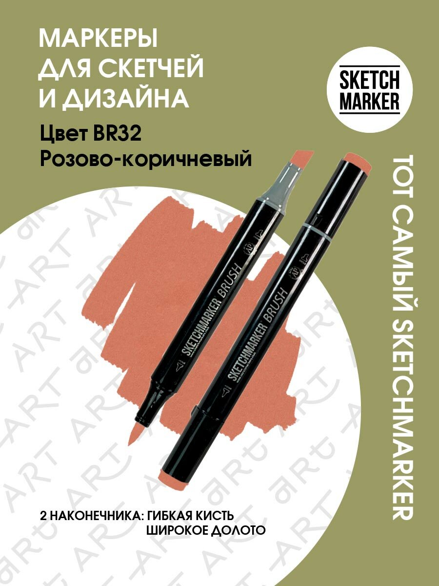 СохранитьДвусторонний заправляемый маркер SKETCHMARKER Brush Pro на спиртовой основе для скетчинга, цвет: BR32 Розово-коричневый интересное: