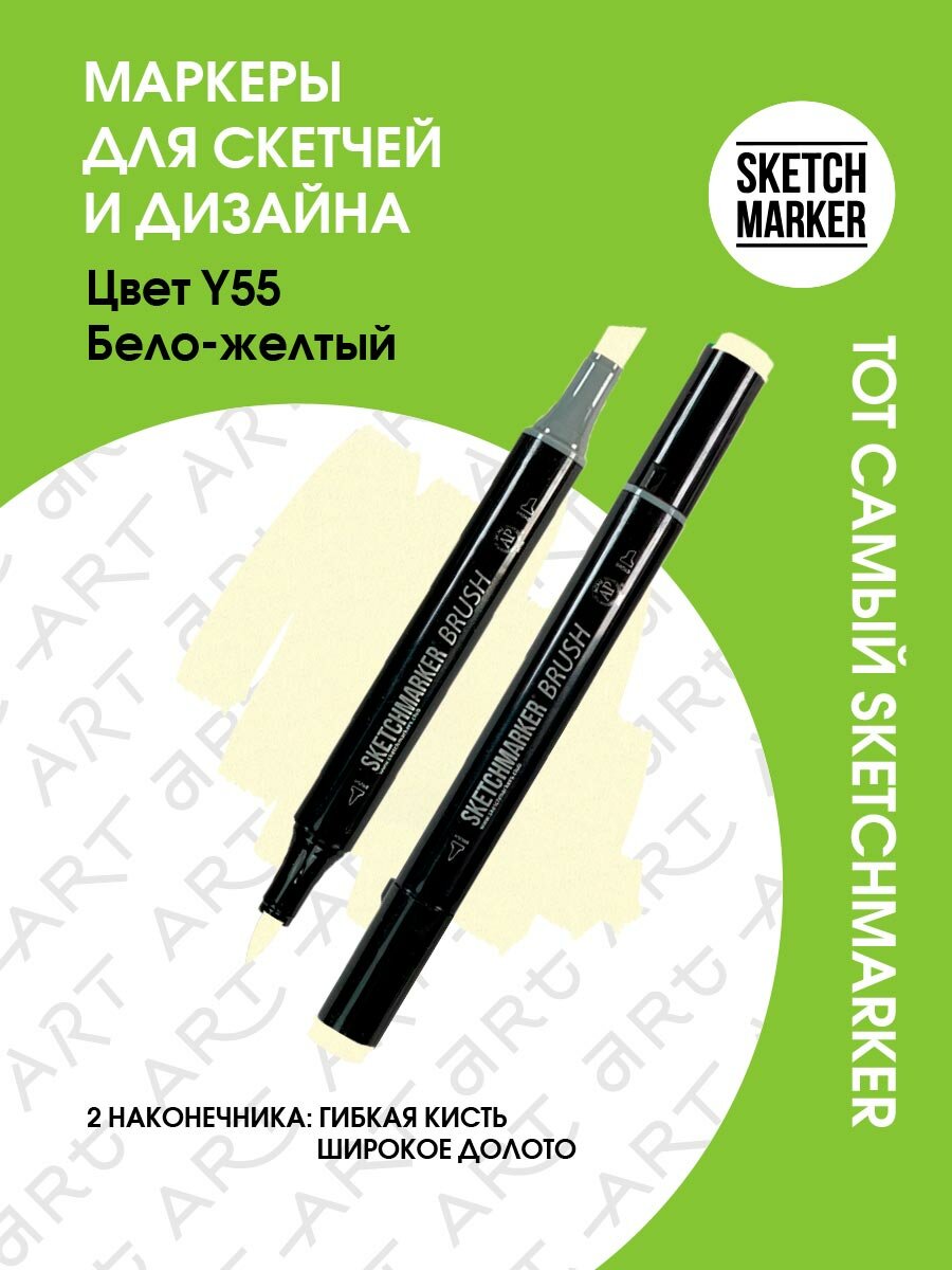 Купить Двусторонний заправляемый маркер SKETCHMARKER Brush Pro на спиртовой основе для скетчинга, цвет: Y55 Бело-жёлтый