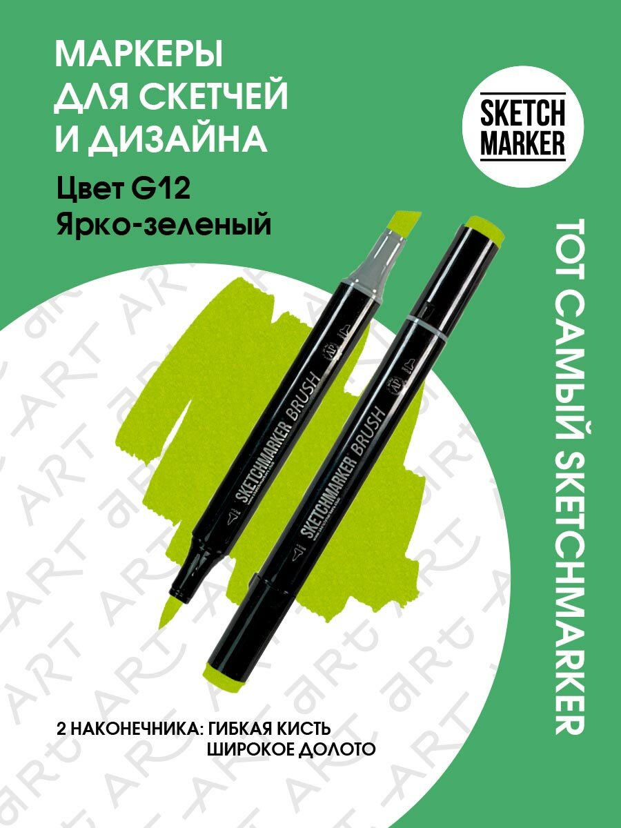 Купить Двусторонний заправляемый маркер SKETCHMARKER Brush Pro на спиртовой основе для скетчинга, цвет: G12 Ярко зелёный