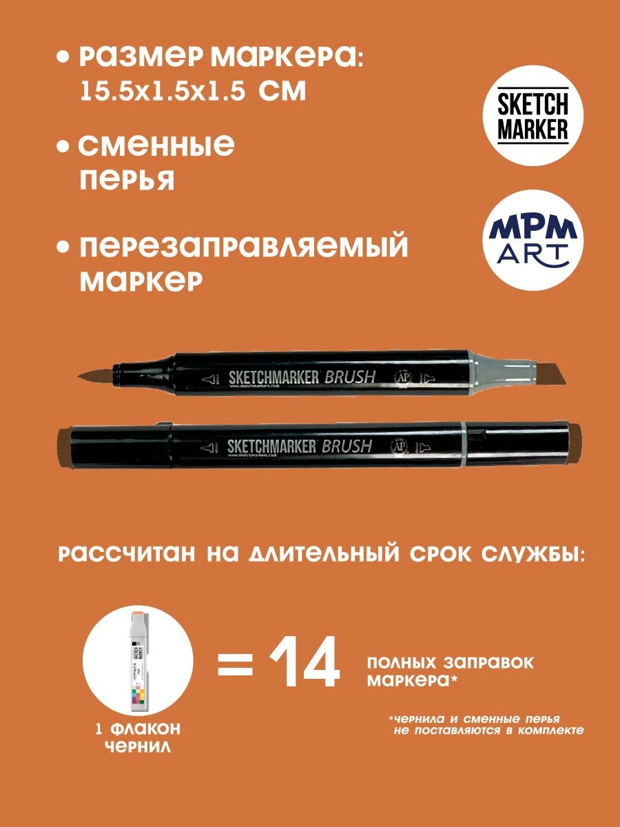 СохранитьДвусторонний заправляемый маркер SKETCHMARKER Brush Pro на спиртовой основе для скетчинга, цвет: BR91 Бронзовый интересное: