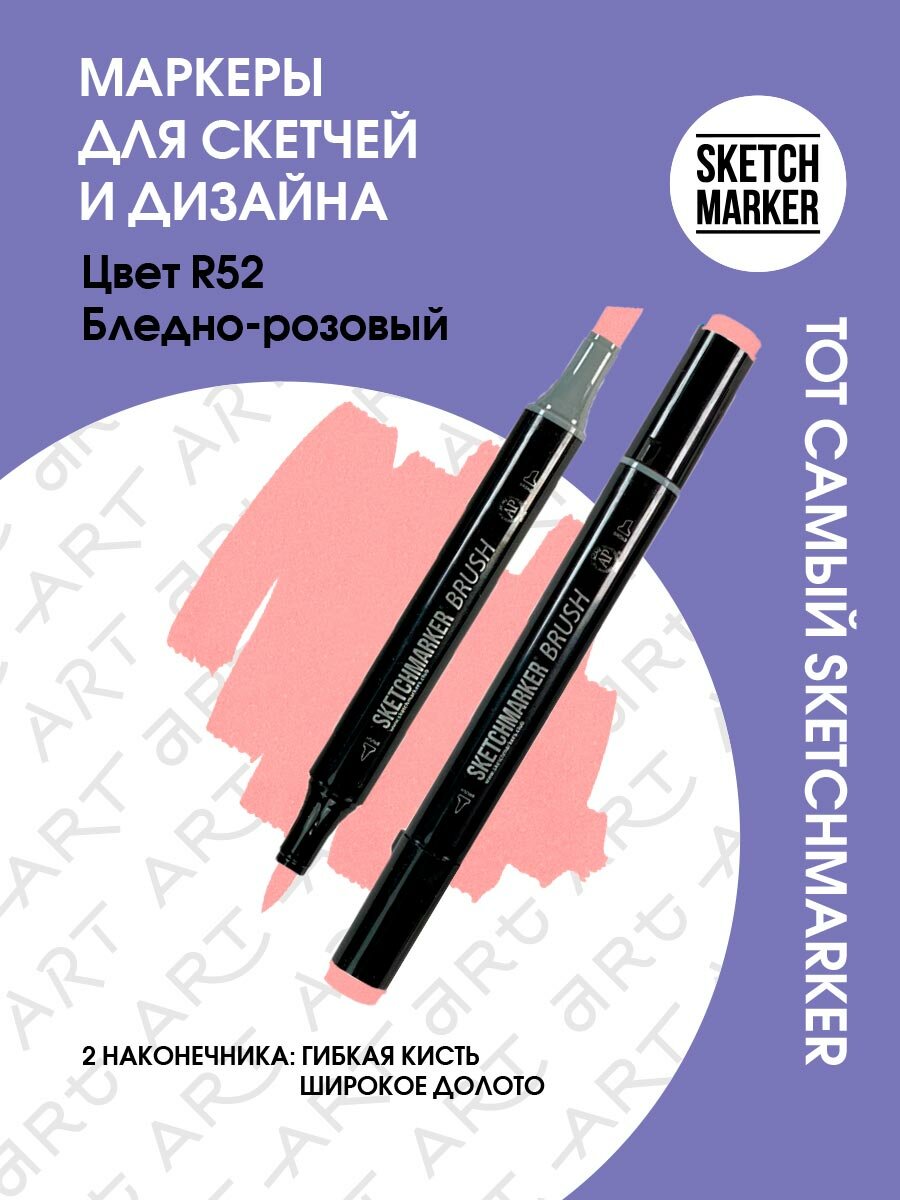 Купить Двусторонний заправляемый маркер SKETCHMARKER Brush Pro на спиртовой основе для скетчинга, цвет: R52 Бледно розовый