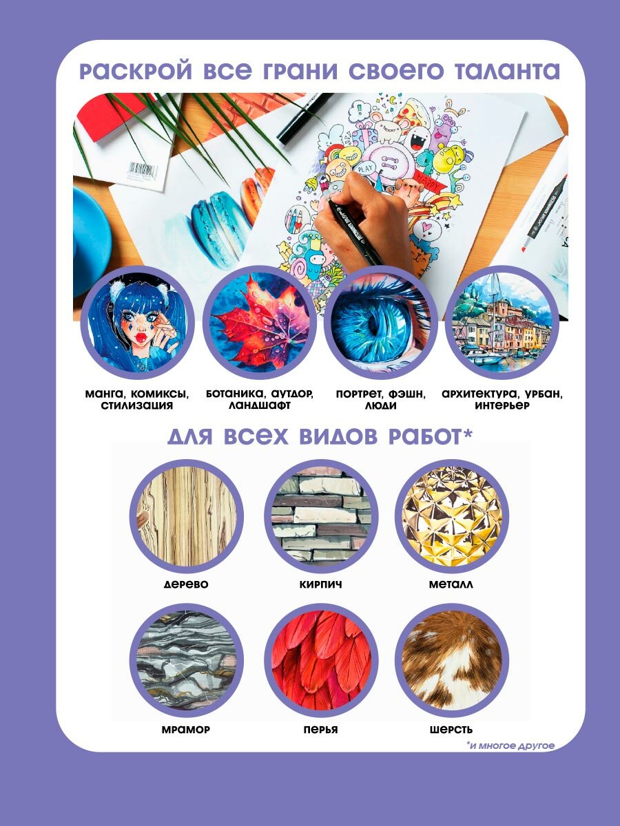 | Плюсы: | Хорошие маркеры, наполненные, цвет совпадает с картинкой, долго не решалась купить, думала по картинке нереально подобрать, оказалось совпадет почти полностью. |