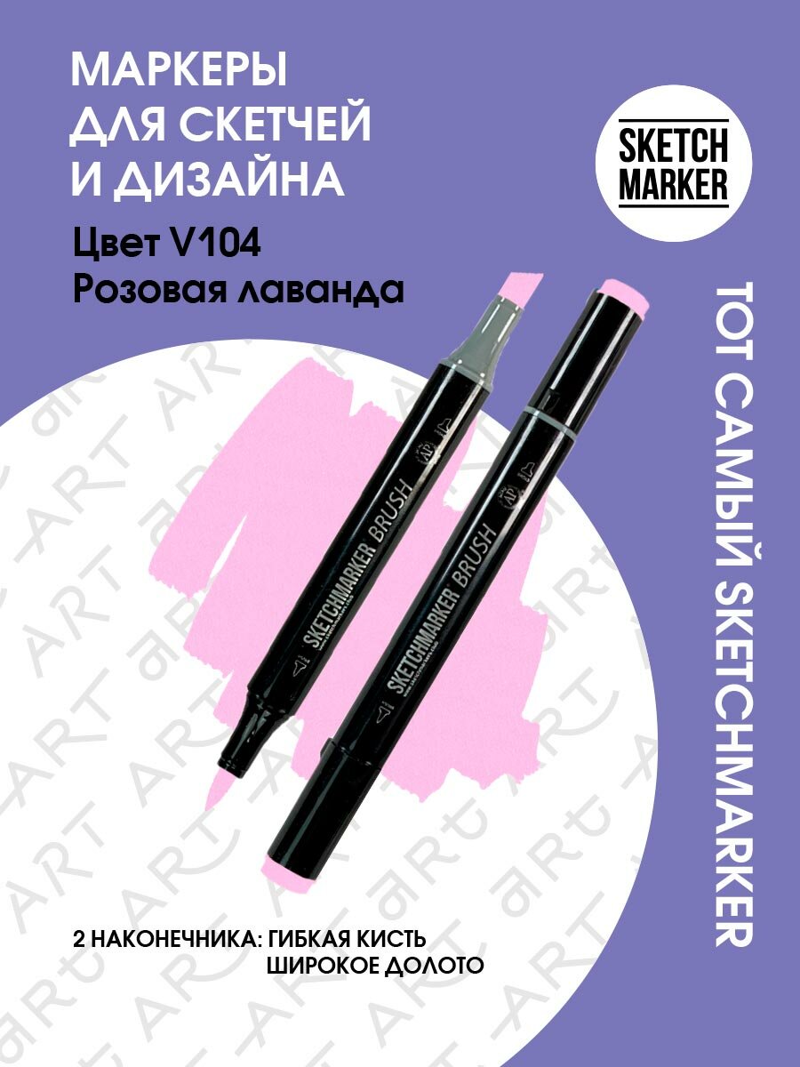 Купить Двусторонний заправляемый маркер SKETCHMARKER Brush Pro на спиртовой основе для скетчинга, цвет: V104 Розовая лаванда